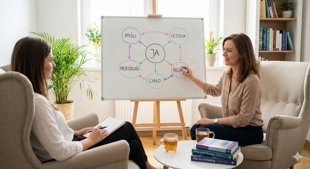 Odpowiedzią na tę złożoność jest psychoterapia integracyjna. To nie jest przypadkowy zbiór technik, lecz spójny, poparty badaniami system leczenia, który czerpie to, co najskuteczniejsze z różnych nurtów (poznawczo-behawioralnego, psychodynamicznego, humanistycznego czy systemowego).
